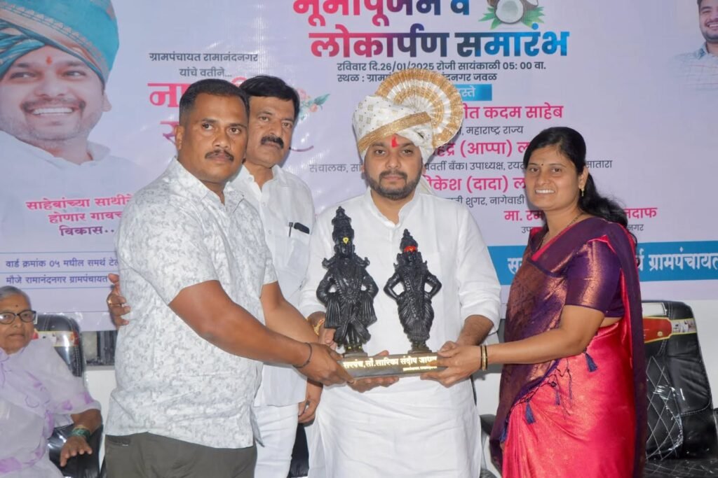 The foundation stone laying and inauguration of various development projects in Ramanandnagar were carried out in the presence of Hon. Mahendraappa Lad and other esteemed dignitaries. Ensuring the progress of the common people and providing essential facilities promptly has always been a priority. Continuous efforts are being made to enhance the development of Ramanandnagar.